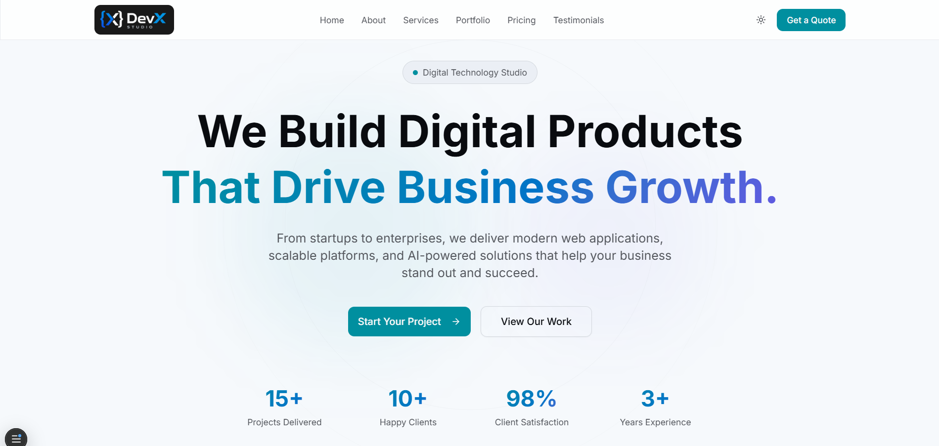 Official website showcasing DevX Studio services and portfolio.